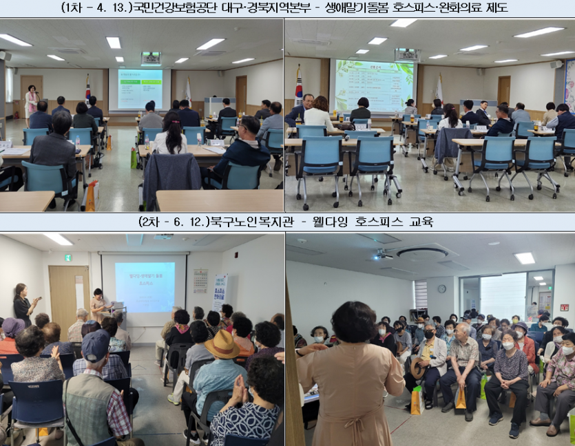 본 연계교육을 통해 지역사회의 생애말기 돌봄이 필요한 지역민과 돌봄을 제공하는 모든 의료 관련 종사자들에게 호스피스·완화의료 및 연명의료법 의사결정 지원에 대한 교육을 실시하여 지역사회 주민들의 생애말기 삶의 질 향상과 호스피스·완화의료에 대한 올바른 정보 전달을 도모하고자 하였습니다.