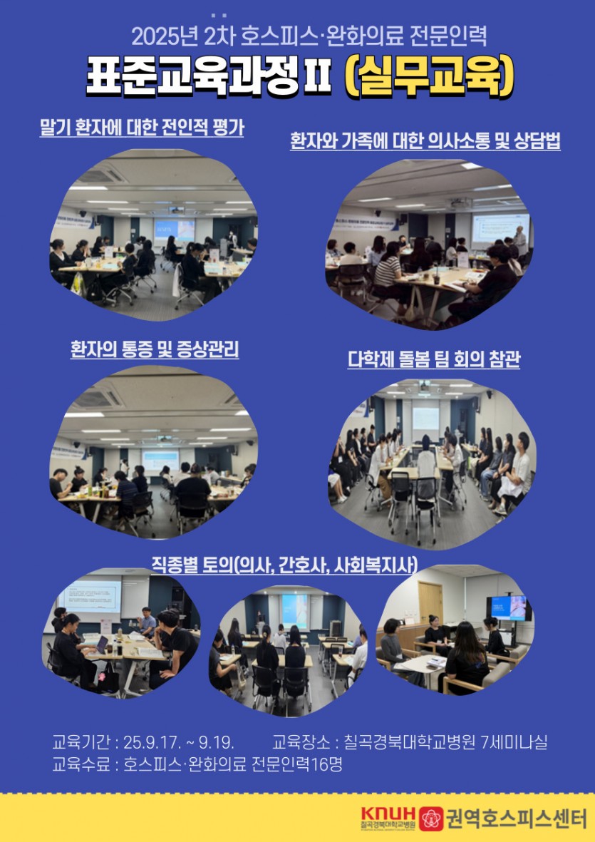 2025년 2차 호스피스 완화의료 전문인력 표준교육과정Ⅱ(실무교육)을 진행하였습니다.